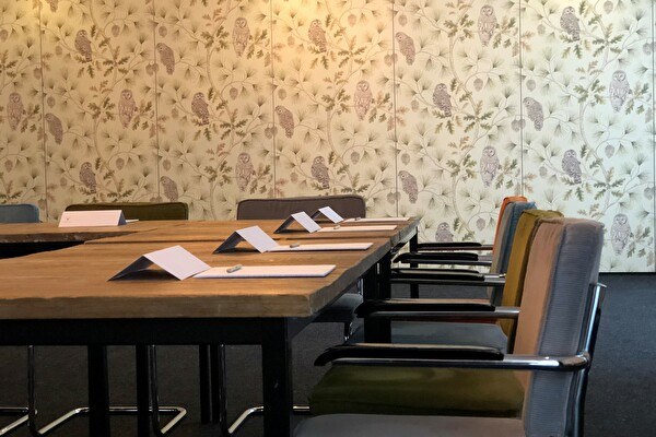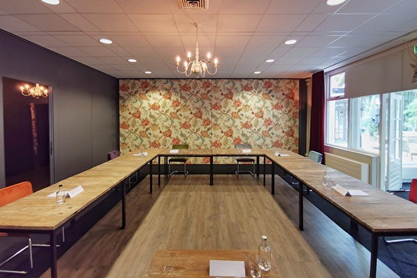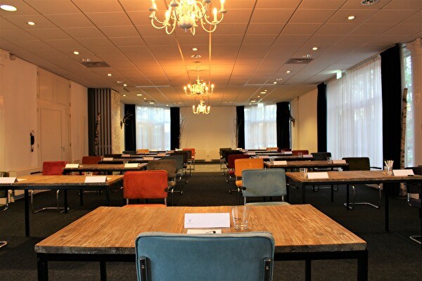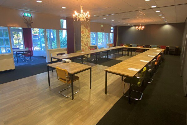 De vergaderruimtes zo ingericht dat u door de grote raampartijen altijd uitzicht heeft op de natuur. Onze vergaderzalen kenmerken zich doordat 'buiten' naar binnen is gehaald. Berkenbomen, gekapt op het landgoed, staan in de ruimtes zodat u binnen kunt 'vergaderen in het bos'. In de zalen staan robuuste houten tafels met stoelen in de kleuren van het bos. Hier en daar treft u een vogelhuisje of een hertengewei aan de muur. In de lounge schuift u gezellig aan op onze Chesterfields bij de haard voor een heerlijke kop verse bonenkoffie om even te ontspannen.